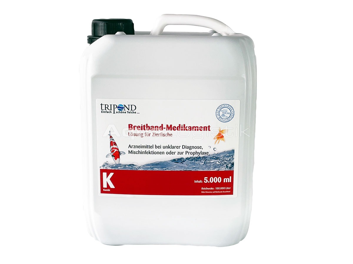 Das TRIPOND Breitband Medikament ist ein universell einsetzbares Arzneimittel zur Behandlung von Zierfischen im Gartenteich. Es eignet sich besonders bei unklaren Diagnosen, Mischinfektionen oder zur Prophylaxe. Das Medikament schützt zuverlässig vor Parasiten, Pilzbefall und bakteriellen Erkrankungen und trägt zur Gesunderhaltung der Fische bei.