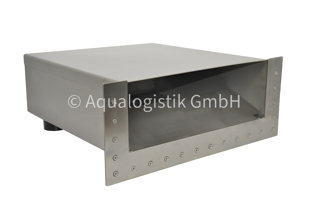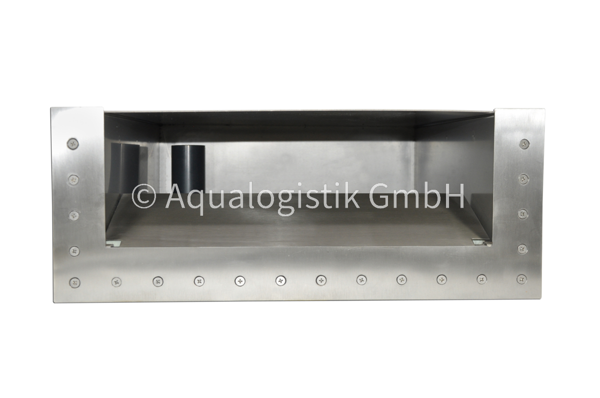 Der Wandskimmer aus Edelstahl bietet eine zuverlässige Lösung zur Reinigung von Oberflächenwasser in großen Teichen und Pools. Mit einer empfohlenen Durchflussrate von 10.000 bis 15.000 Litern pro Stunde entfernt er effektiv Blätter, Schmutz und andere Verunreinigungen und sorgt so für eine klare Wasseroberfläche.