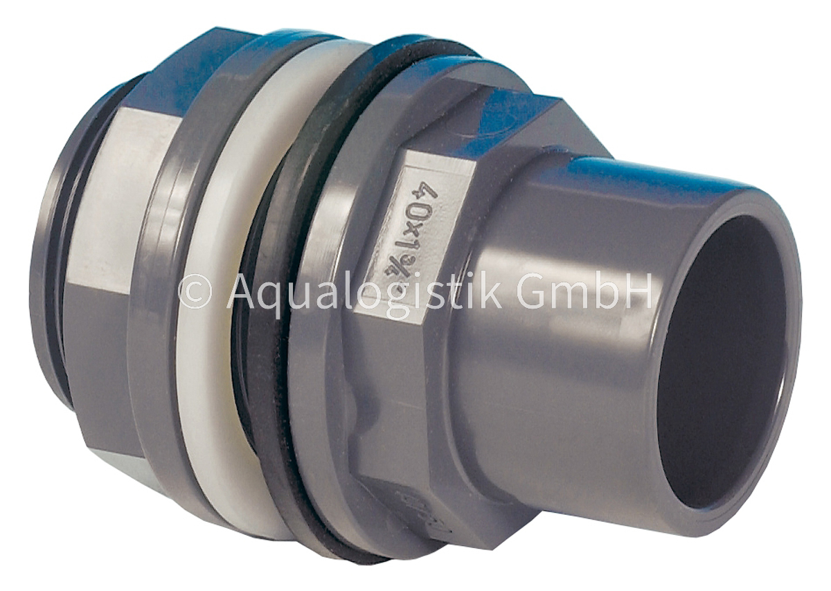 Die PVC-Durchführung ermöglicht eine stabile und dichte Verbindung von Rohrleitungen durch Wände, Behälter oder andere feste Strukturen. Sie sorgt für eine sichere Abdichtung und verhindert das Austreten von Flüssigkeiten. Das robuste PVC-Material ist langlebig, druckbeständig und widerstandsfähig gegenüber äußeren Einflüssen.