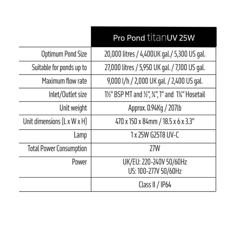TMC Pro Pond Titan UV25 bis ca. 20.000–27.000 Liter Mittlere Gartenteiche