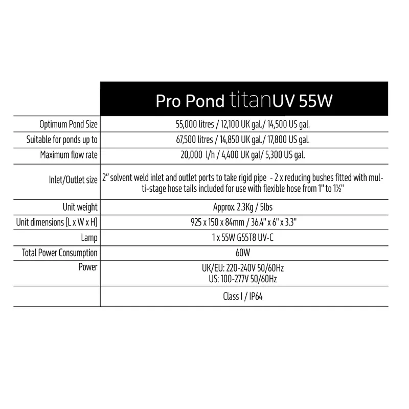 TMC Pro Pond Titan UV55 bis ca. 55.000–67.500 Liter Größere Teiche und Koiteiche