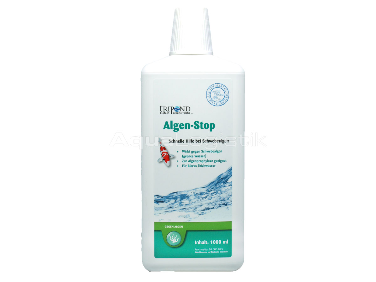 TRIPOND Algen-Stop wurde speziell zur Bekämpfung von Schwebealgen (grünes Wasser) entwickelt. Der innovative Wirkstoff stört den Stoffwechsel der Algen, wodurch diese keine Photosynthese mehr betreiben können und absterben. In geringem Maße wirkt TRIPOND Algen-Stop auch gegen Fadenalgen.