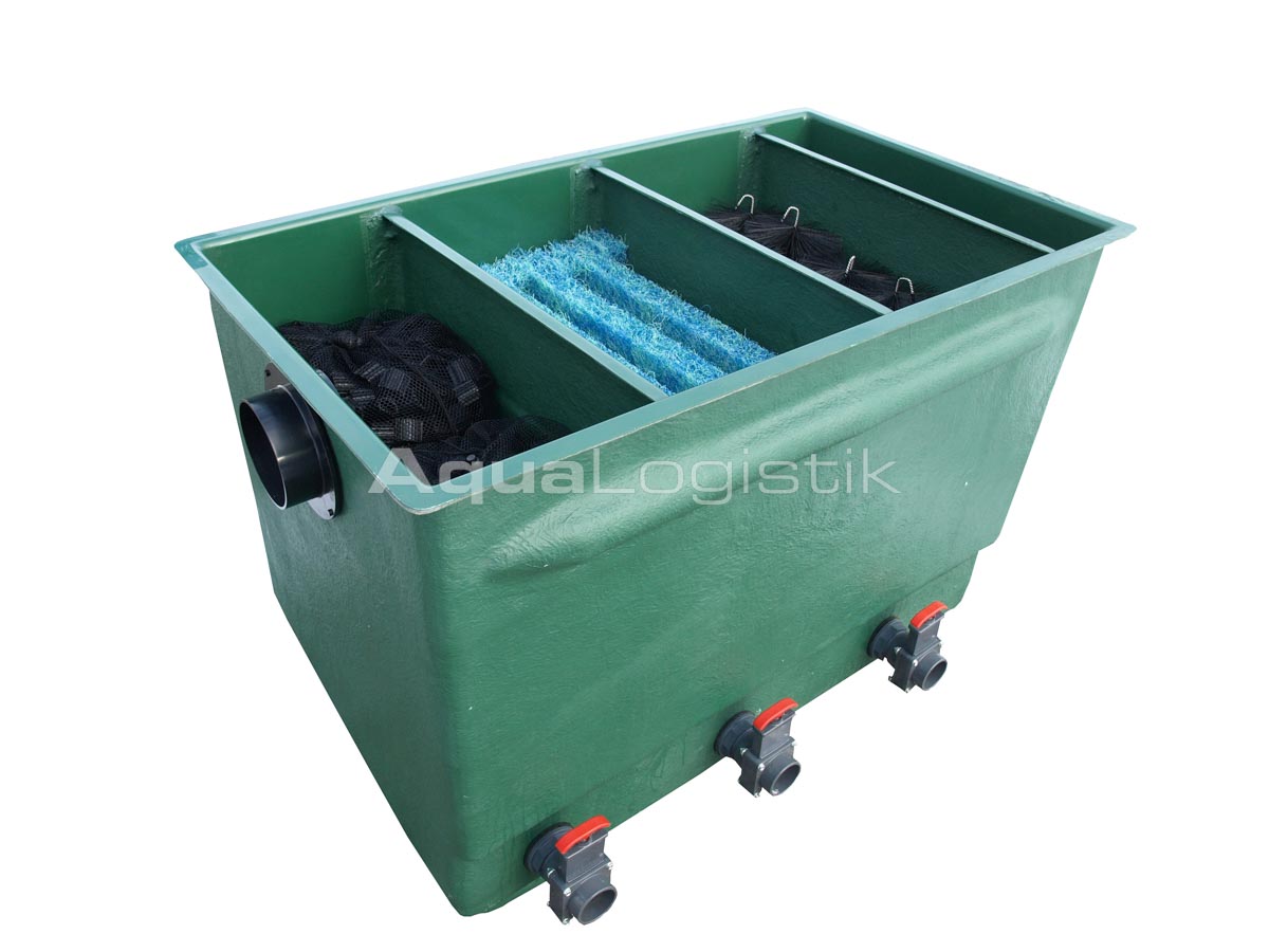 Die AquaLogistik Reihenfilter sind kompakte und effiziente Filtersysteme für Teiche bis 30.000 Liter. Dank robuster GFK-Konstruktion, optionalem Vortex-Vorfilter und einfacher Handhabung sorgen sie für eine zuverlässige Wasseraufbereitung mit minimalem Wartungsaufwand. Der Jumbo-Filter bietet eine leistungsstärkere Alternative für größere Teiche.